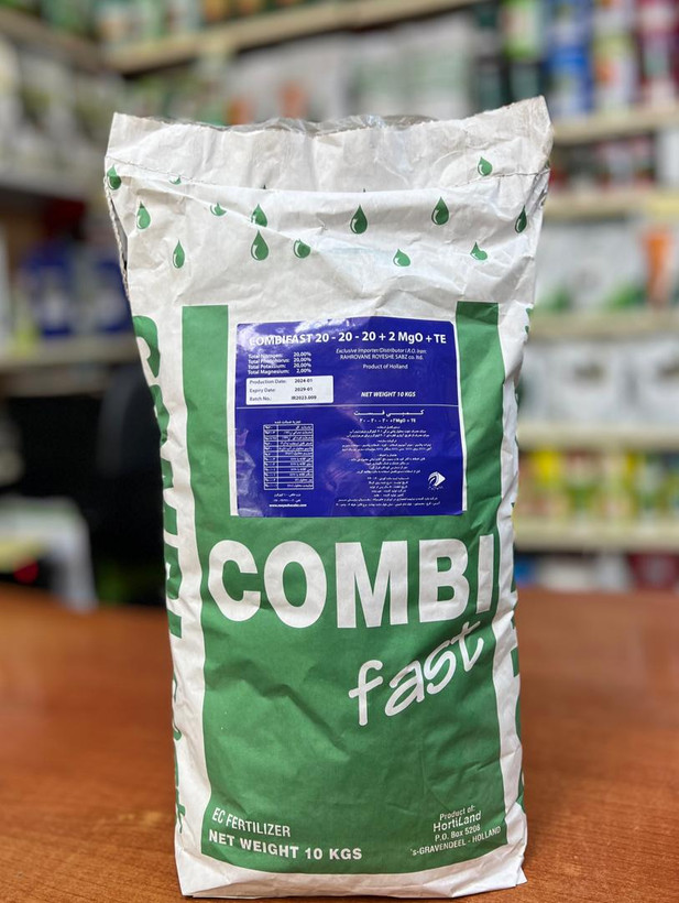 کود کامل 20-20-20 کمبی فست از سه عنصر اصلی نیتروژن، فسفر و پتاسیم تشکیل شده و به دلیل مصرف بالای این عناصر به عنوان یک کود عمومی تلقی میشود. این کود حاوی فرم کلات شده عناصر ریزمغذی مثل آهن، روی، منیزیم، مولیبدن، بر و مس است. کودهای کامل در صورتی کیفیت بالایی خواهند داشت که فاقد کلر و عناصر سنگین باشند که از تاثیرات مهم آن میتوان به برگسوزی، برگریزی، بد شکلی برگ و میوه اشاره کرد که در کود کامل سه بیست کمبی فست این موارد به صورت کامل برطرف شده است. حلالیت 100 درصد این کود در آب از هدر رفت کود در مخزنها جلوگیری میکند و موجب گرفتگی نازلها هم نمیشود و همچنین بعد از مصرف به صورت محلولپاشی هیچ گونه باقیمانده روی برگ باقی نمیگذارد. کود 20-20-20 کمبی فست به سبب نسبت مساوی از نیتروژن فسفر و پتاسیم موجب ایجاد تعادل عناصر در خاک و گیاه شده و در اوایل فصل رشد کمک بسیاری برای بازیابی انرژی از دست رفته گیاه در فصل زمستان میکند. این کود موجب تشکیل برگهای قوی و یک شروع عالی برای تمامی فرایندهای گیاهی میشود. استفاده از این محصول در تمامی دورههای رشد با توجه به نیاز گیاه امکانپذیر است. وجود عناصر ریزمغذی به نسبتهای تایید شده که همگی به صورت کلات EDTA و EDHMA هستند باعث جذب بهتر این عناصر میشود و همچنین قابلیت تاثیر قابل مشاهده و سریع بر روی گیاه را نیز دارد. استفاده منظم از اين محصول سيستم ريشه، برگ و ميوه را تقويت ميكند.