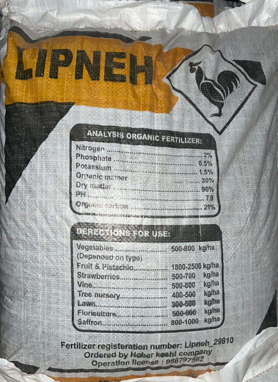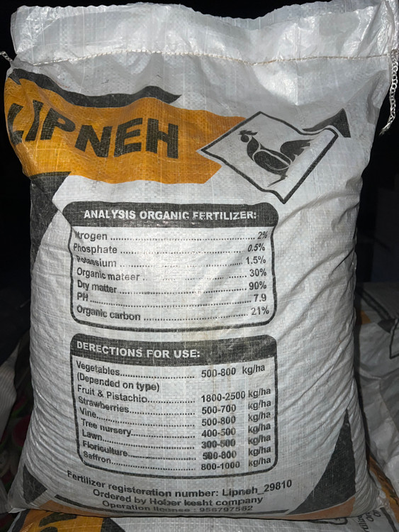 فضولات مرغداریهای گوشتی، نیترات آمونیوم، فسفات دی آمونیوم، سولفات پتاسیم، گوگرد و اوره